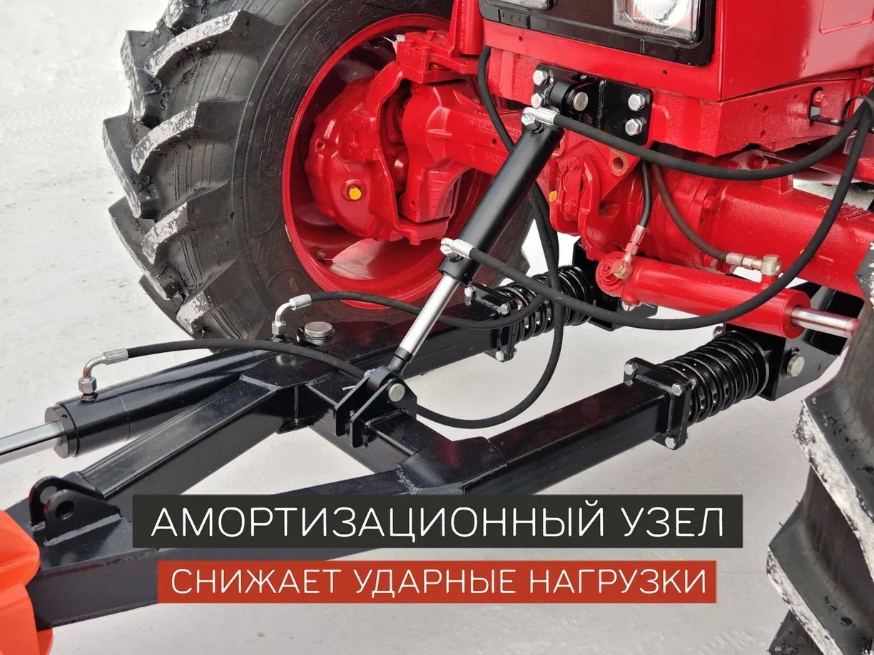 Коммунальный отвал имеет амортизационный узел из двух пружин, которые снижают ударные нагрузки на болтовое соединение и раму трактора.